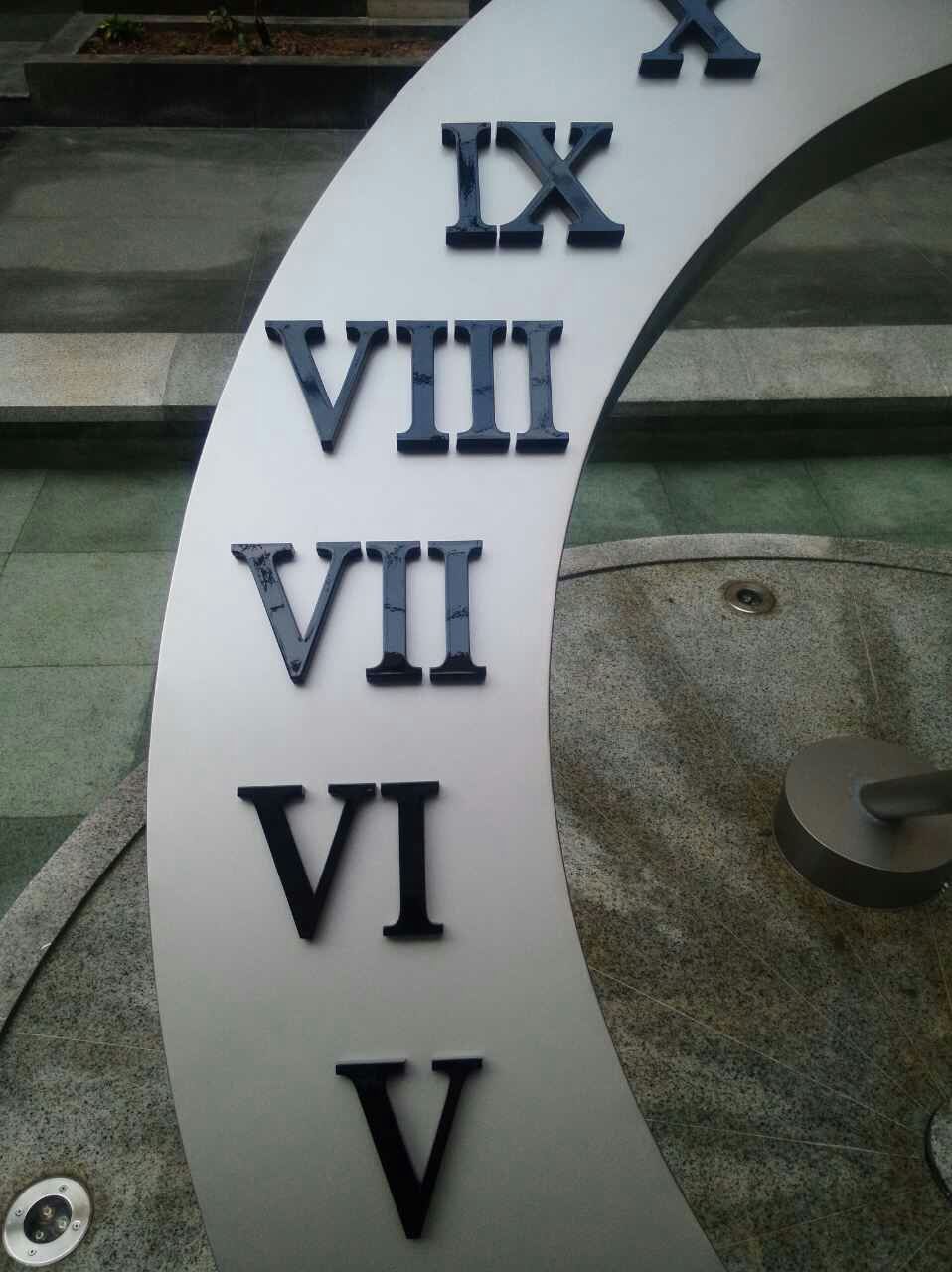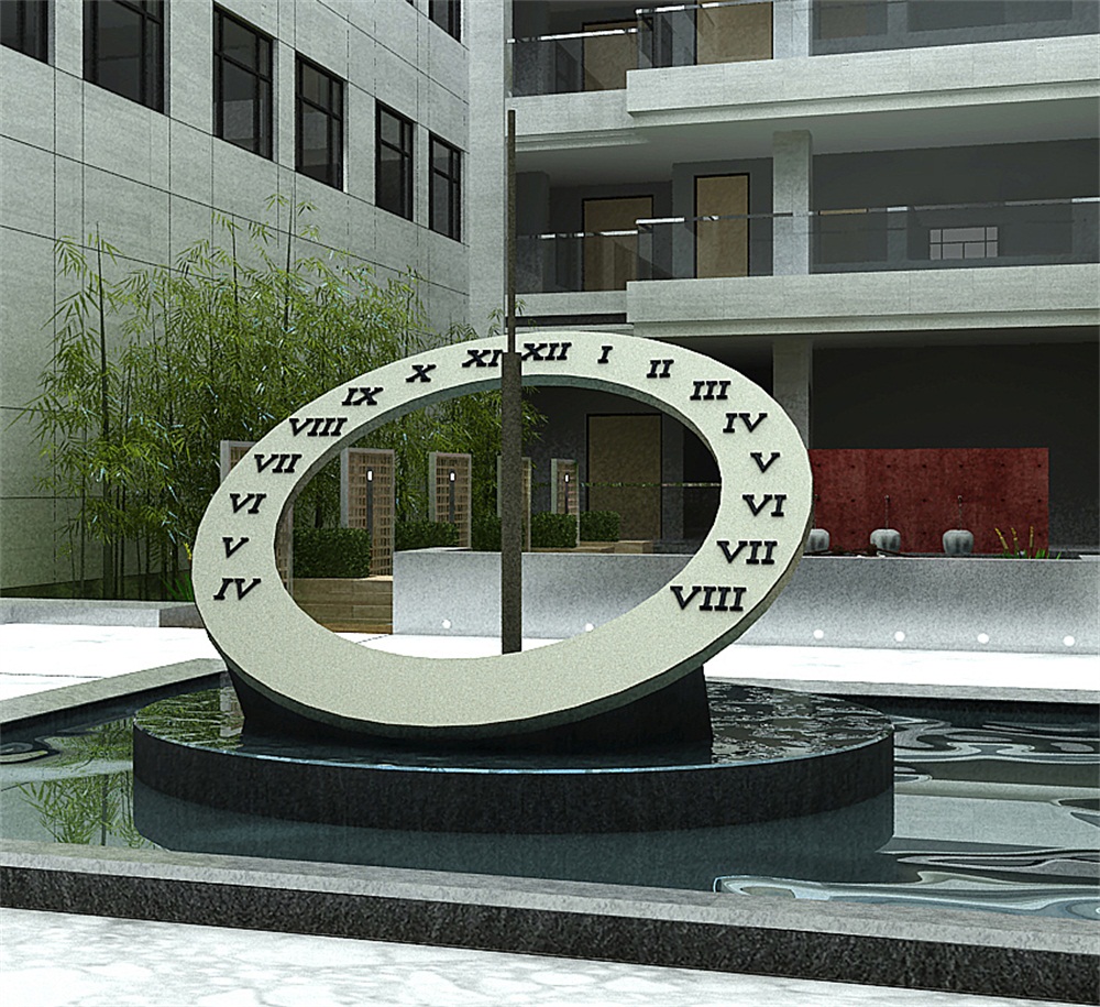 雕塑采用#304不銹鋼造型。日晷直徑197cm ,傾斜度45度。表面噴氟碳漆。