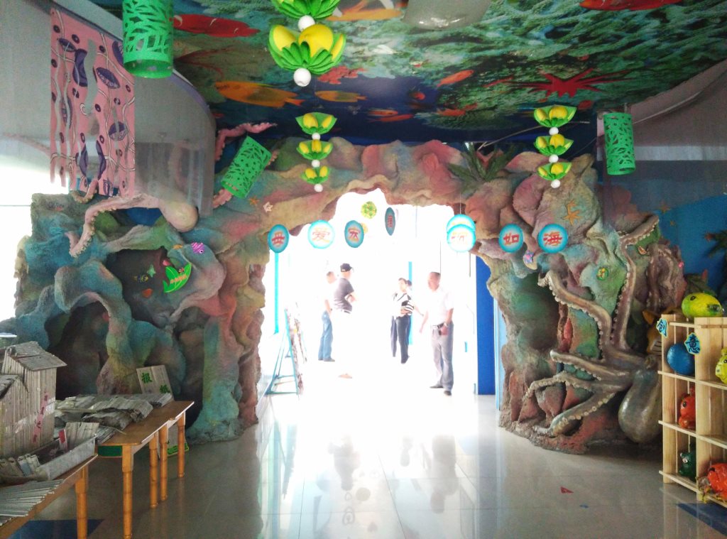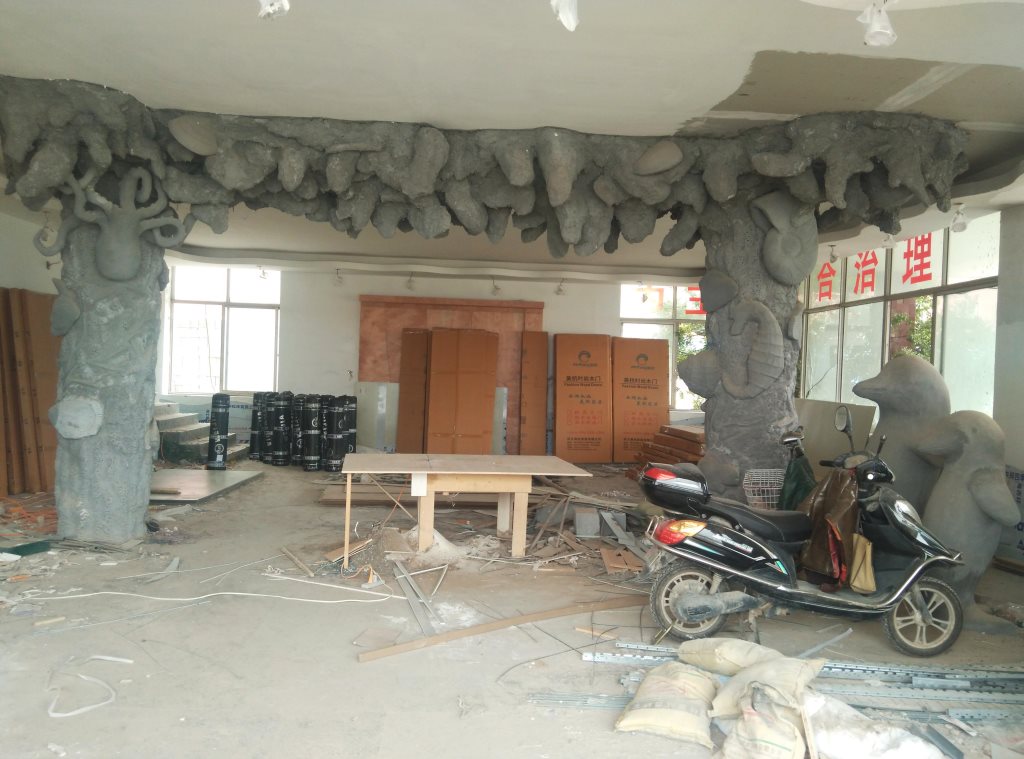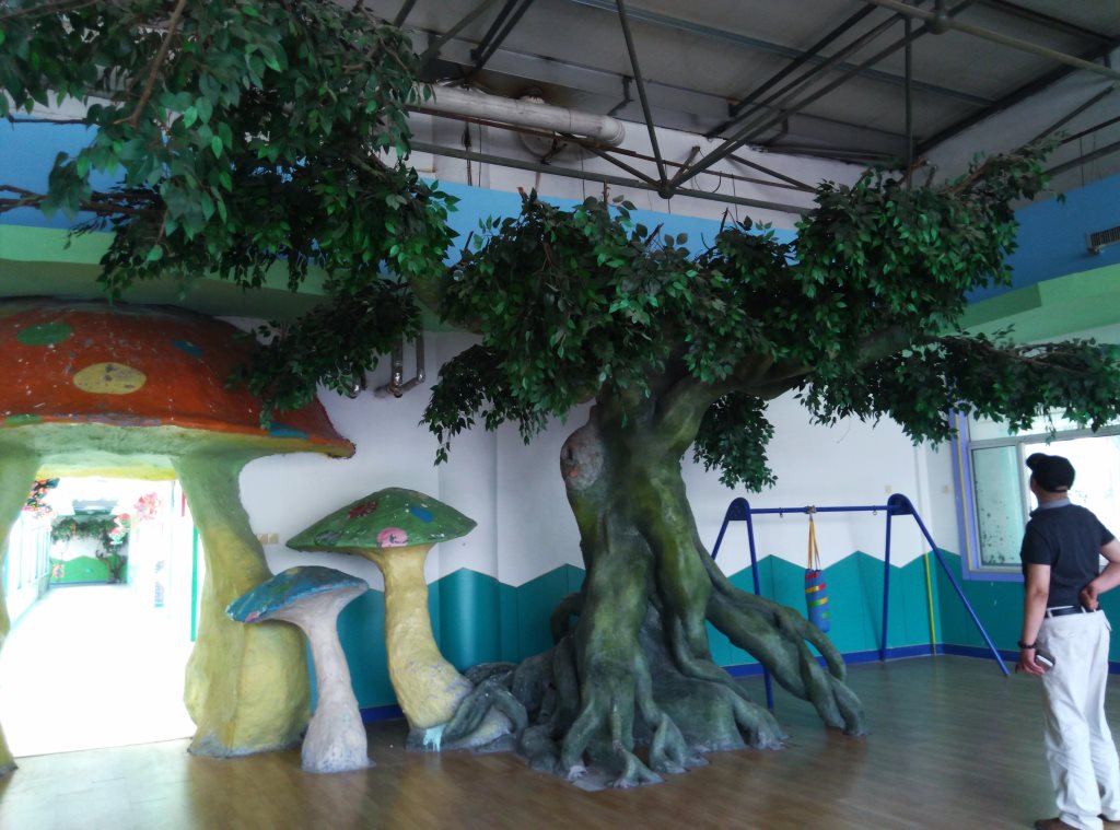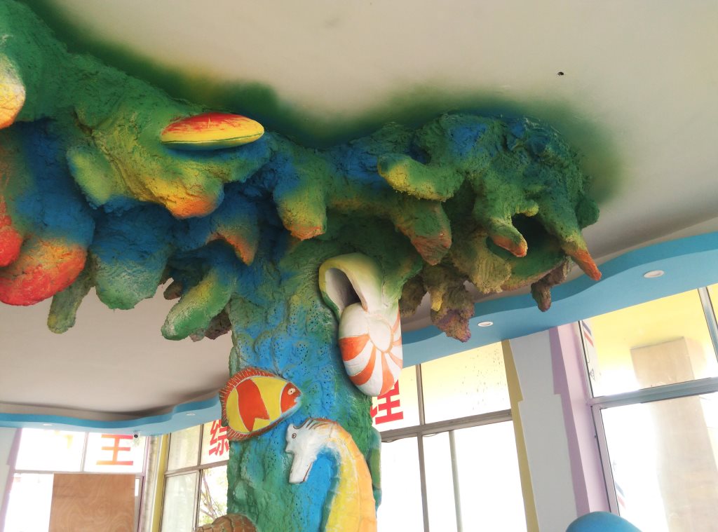 施工內容:幼兒園室內假樹、水泥假山大門、室內房頂星空、水泥蘑菇亭、水泥小鹿雕塑、水泥仿真海底世界雕塑。