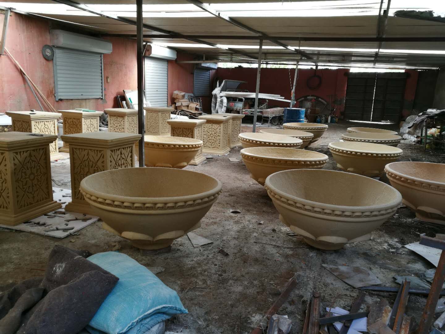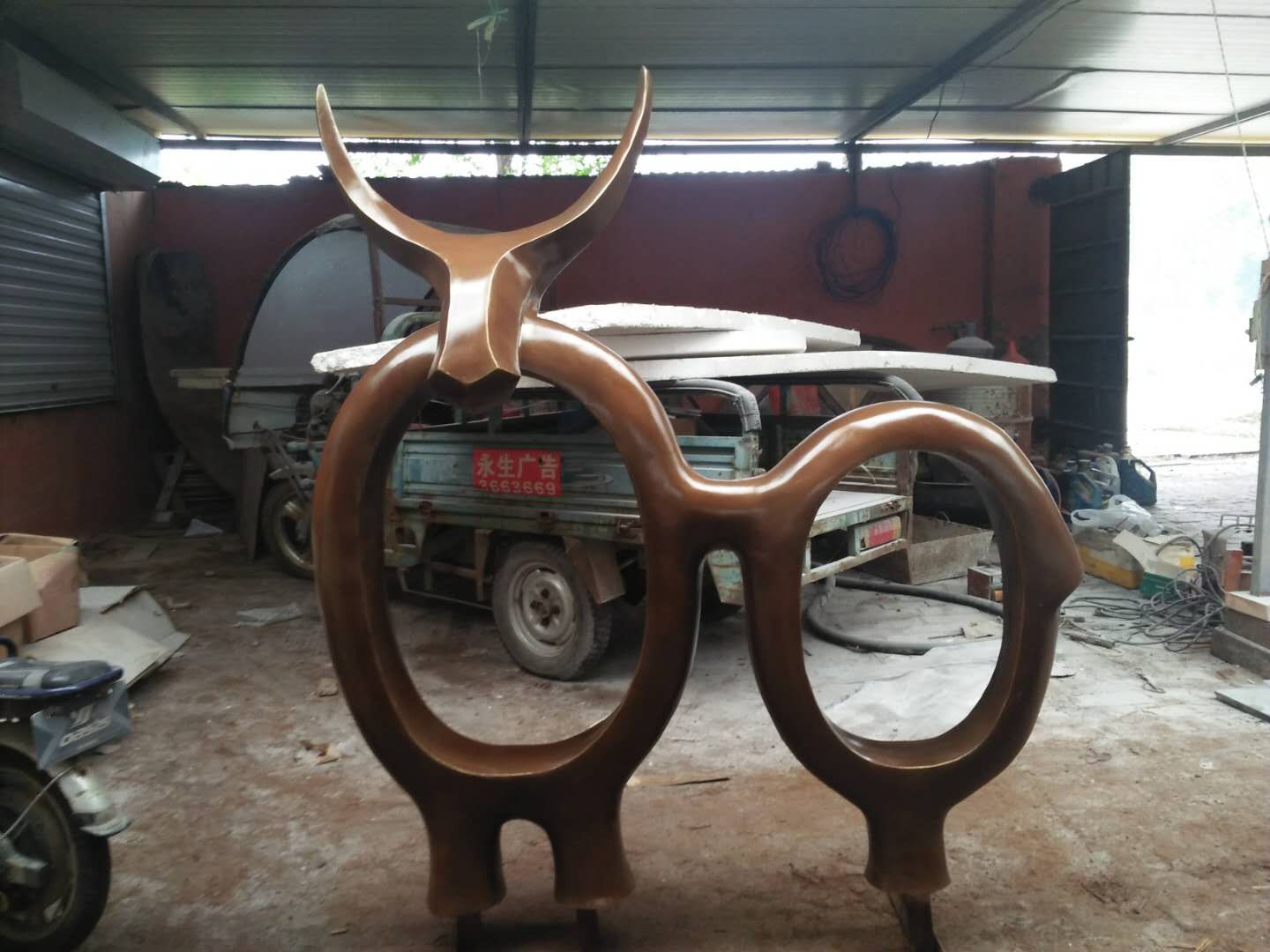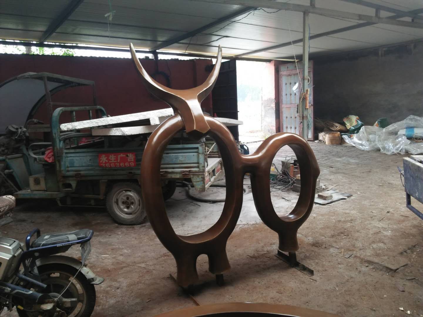 施工內(nèi)容:玻璃鋼牛雕塑、騎車(chē)人——不銹鋼雕塑、砂巖花缽雕塑。