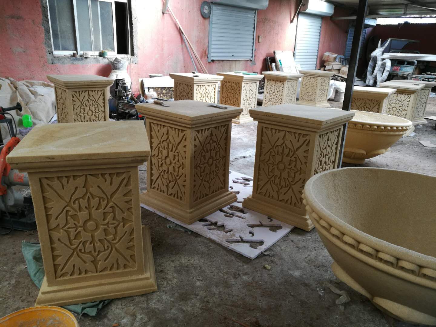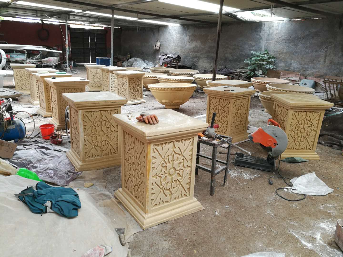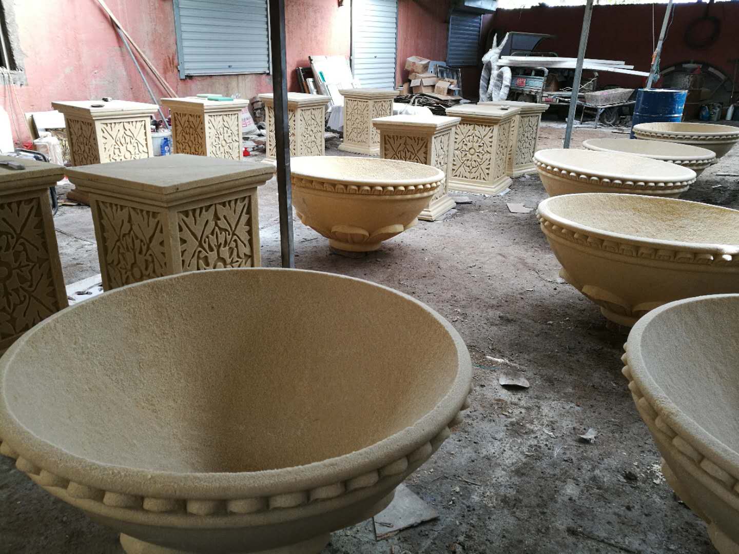 施工內(nèi)容:玻璃鋼牛雕塑、騎車(chē)人——不銹鋼雕塑、砂巖花缽雕塑。