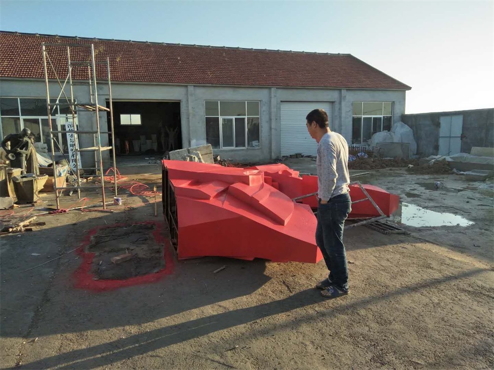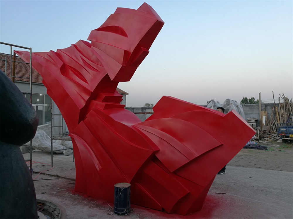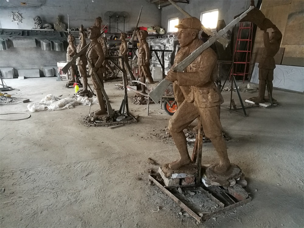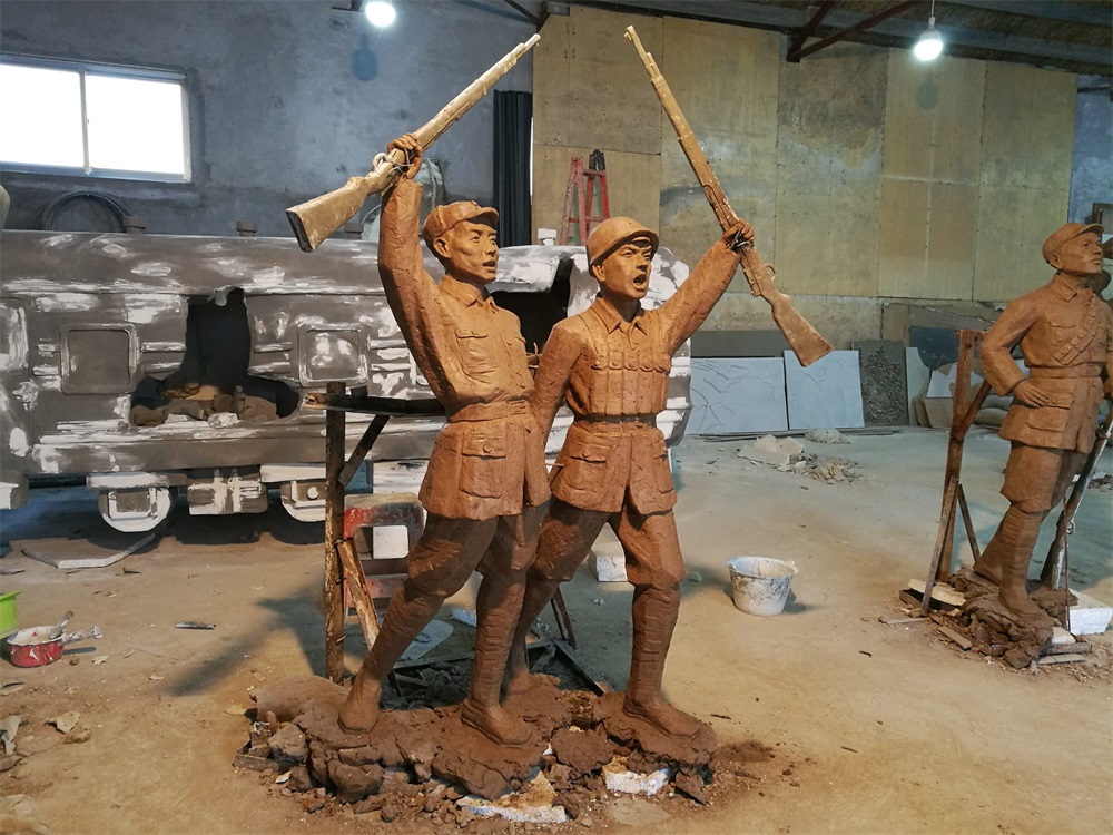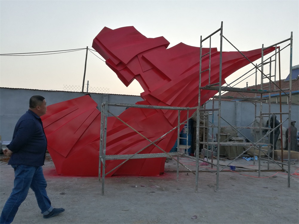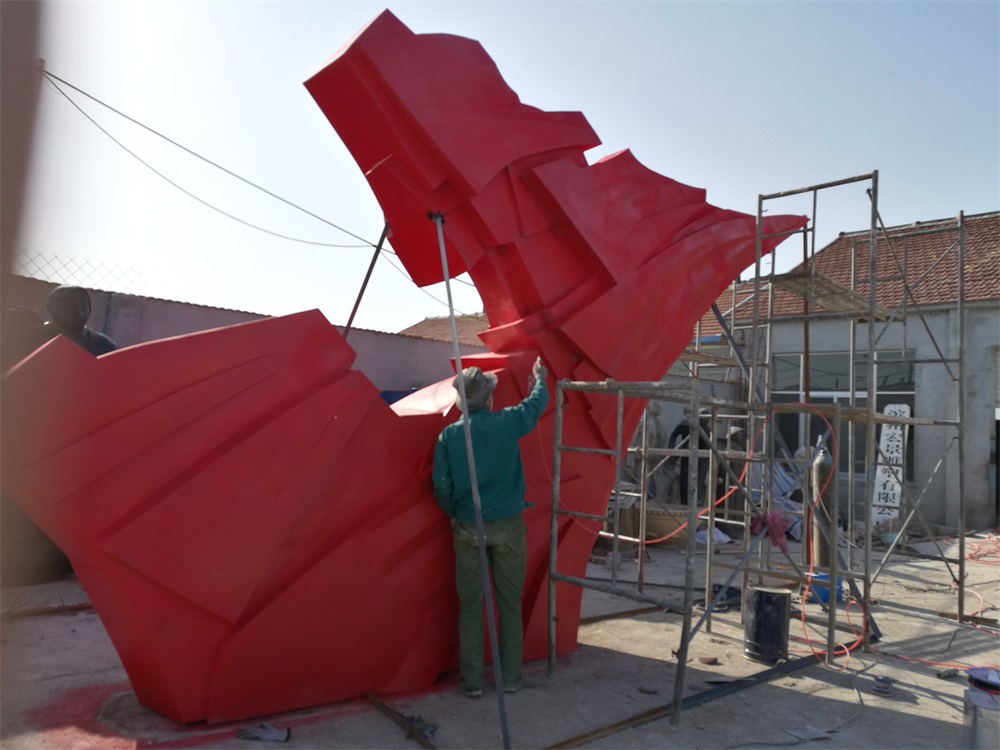 雕塑說明:紅旗雕塑采用不銹鋼鍛造工藝做型,高4米,長8米。人物群雕共10個(gè)人物,采用玻璃鋼工藝制作。