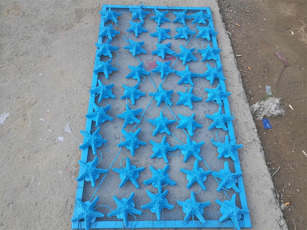 雕塑說明:該項目包含了1300個海星雕塑(內(nèi)置燈光),35個船舵雕塑,3個船錨雕塑,62個海魚雕塑,70個海鳥雕塑,16個救生圈模型,6個船槳造型以及一些其他海洋題材雕塑。