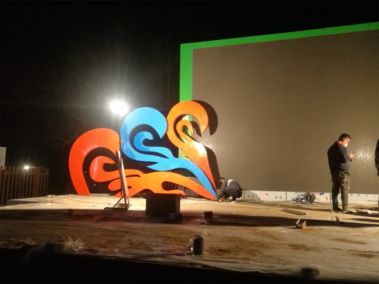 打漁張景區(qū)游客中心大舞臺不銹鋼造型雕塑