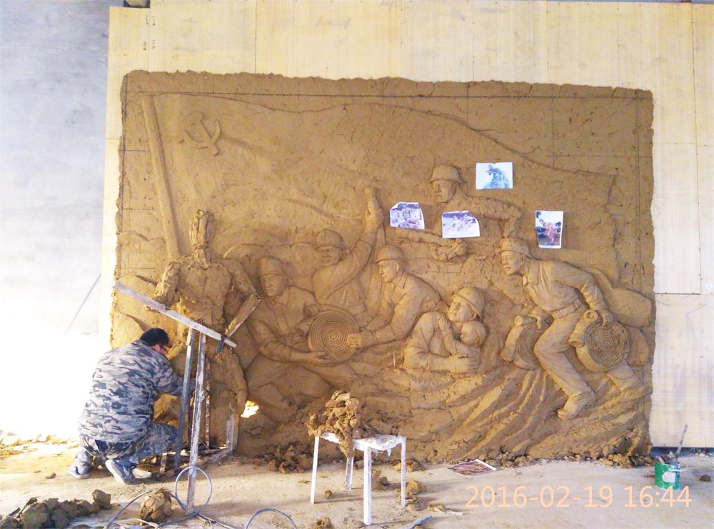 消防題材玻璃鋼浮雕泥塑即將完工,目前處于后期調整階段,計劃2天內完工。